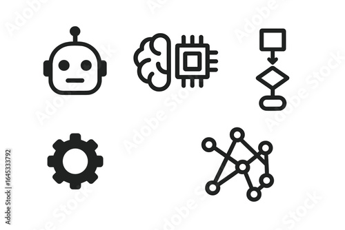 Wall mural various icons representing artificial intelligence, machine learning, and neural networks in a moder
