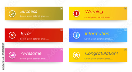 The watermark will not be included on Wall mural.: Various notification window templates - the layout of the smartphone warning or message interface - wi