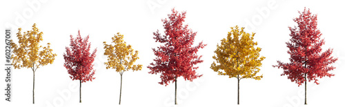 Wall mural : Various street autumn trees (quercus rubra, platanus, maple) medium and small isolated png on a tran