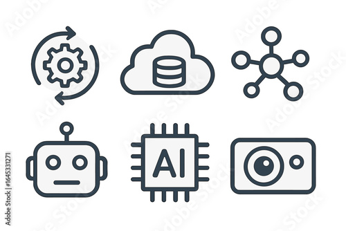 Wall mural : Various technology icons representing artificial intelligence, data processing, and automation conce