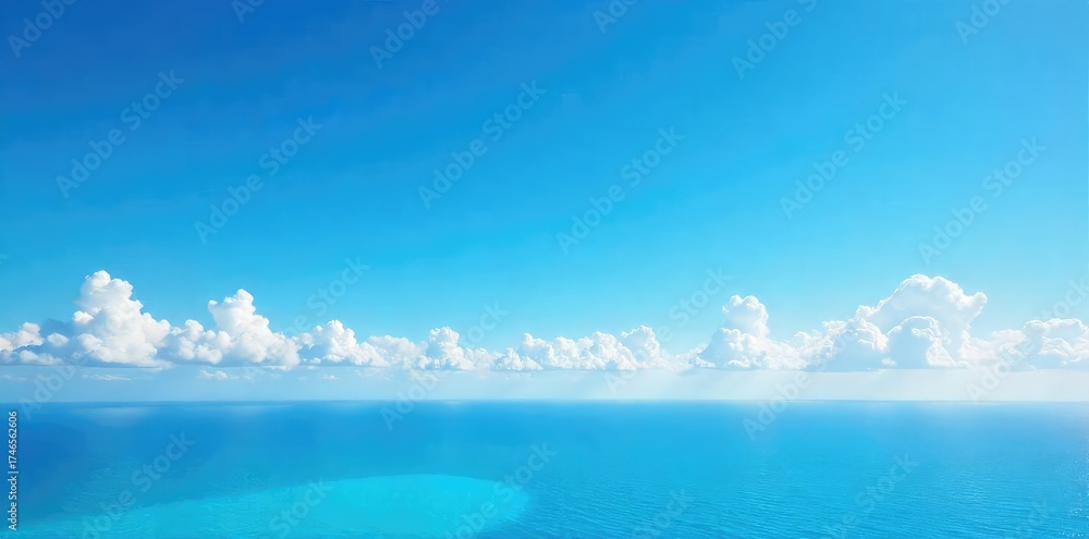 The watermark will not be included on Wall mural.: Vast, cloudless azure sky stretching to the horizon, a perfect representation of serenity and endles