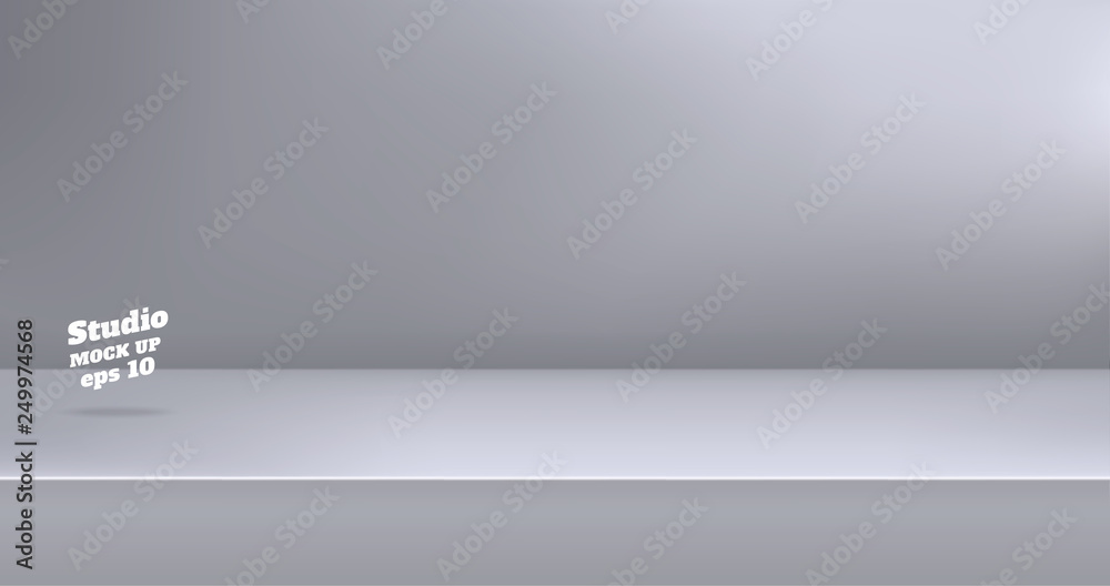 Wall mural vector,empty modern grey color studio table room background ,product display with copy space for dis