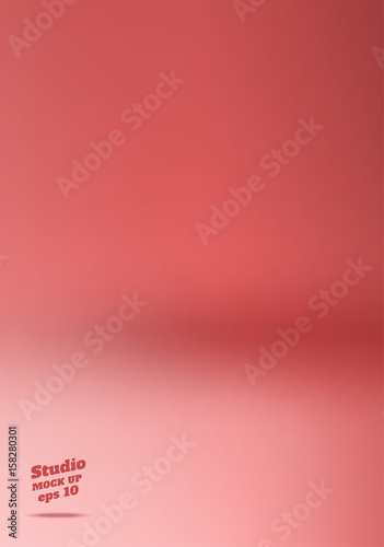 The watermark will not be included on Wall mural.: Vector,empty soft red studio room background in portrait orientation ,template mock up for display o