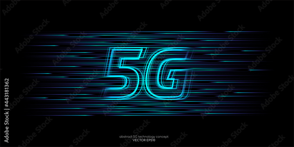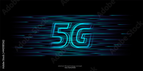 The watermark will not be included on Wall mural.: Vector 5g hight speed network technology concept by blue light lines speed motion pattern isolated o