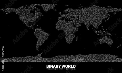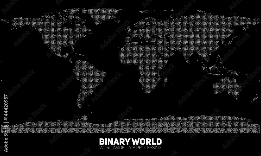 Vector abstract binary world map - continents constructed from binary numbers - global information netWall mural