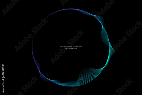 Wall mural vector abstract circle frame with wave lines pattern flowing in blue green colors isolated on black
