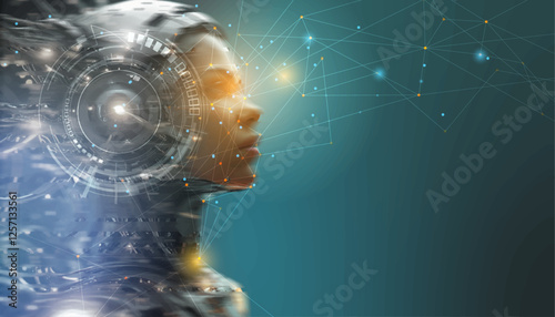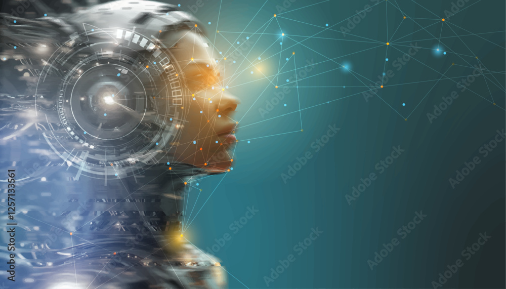 Vector abstract modern technology futuristic, ai bot, artificial intelligence concept - robot and cybWall mural