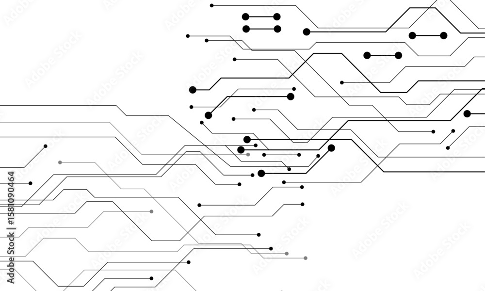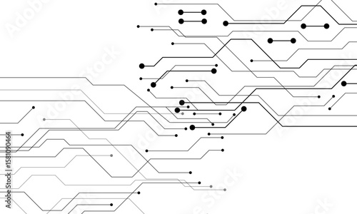 Wall mural : Vector abstract white digital technology circuits lines geometric dots and lines -