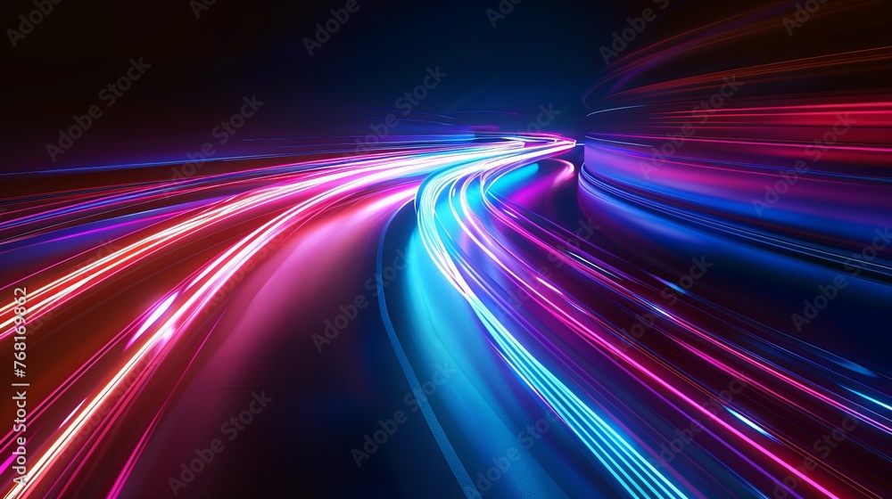 Wall mural : Vector artwork illustrating dynamic light motion and high-speed effects, capturing traffic motion an