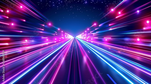Wall mural : Vector artwork illustrating dynamic light motion and high-speed effects, capturing traffic motion an