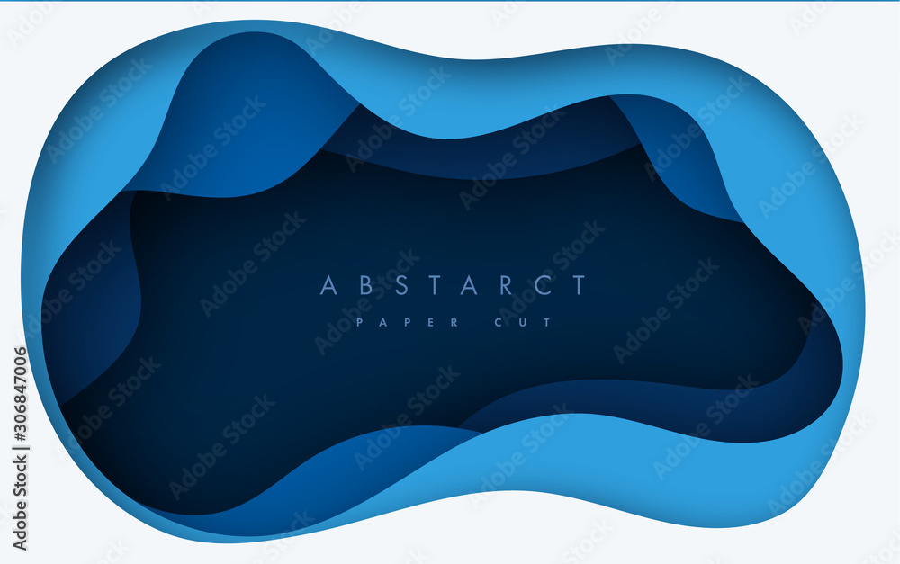 The watermark will not be included on Wall mural.: Vector background with deep blue color paper cut shapes - 3d abstract paper art style, design layout