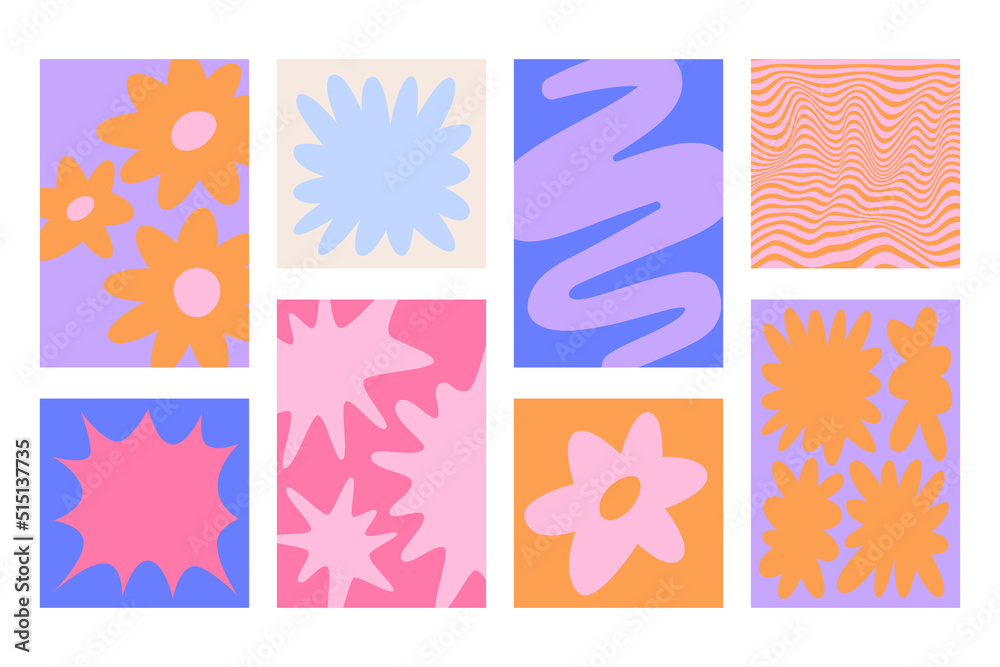 Wall mural vector backgrounds in groovy psychedelic style - abstract backdrops and design templates