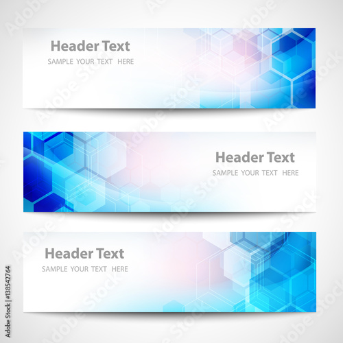 The watermark will not be included on Wall mural.: Vector banner abstract geometric background - template brochure design - blue hexagon shape