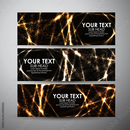 Wall mural vector banners set with abstract gold shining pattern background.