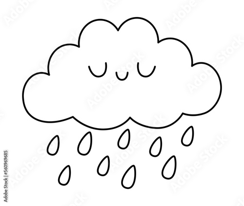 Wall mural : Vector black and white kawaii cloud icon for kids - cute line weather element symbol illustration or