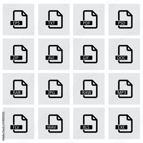 The watermark will not be included on Wall mural.: Vector black file format icon set