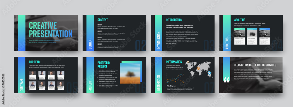 Vector black infographic template with gradient color lines, content description, information and crWall mural