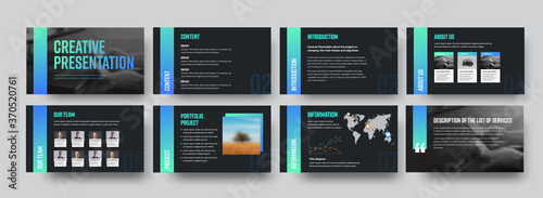 Wall mural vector black infographic template with gradient color lines, content description, information and cr