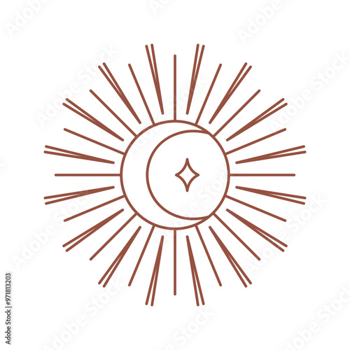 Wall mural vector bohemian logo design template with sun,sunburst and crescent moon. boho linear icon or symbol - Wall murals Wall mural vector bohemian logo design template with sun,sunburst and crescent moon. boho linear icon or symbol - Wall murals