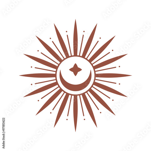 Vector bohemian logo design template with sun,sunburst and crescent moon - boho linear icon or symbolWall mural