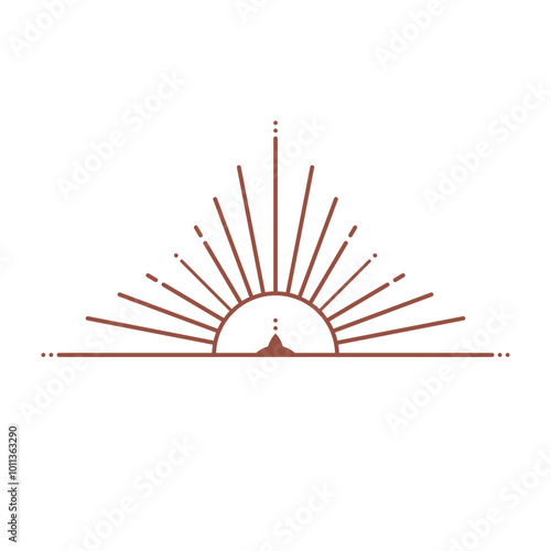 Wall mural vector bohemian logo design template with sun,sunburst and star. boho linear icon or symbol in trend