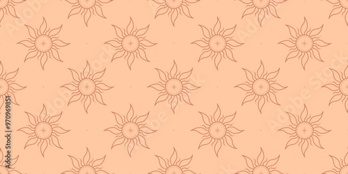 The watermark will not be included on Wall mural.: Vector bohemian seamless pattern with sun,star and sunburst - boho linear emblems in trendy minimalist