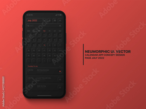 Wall mural vector calendar mobile app july 2022 conceptual ui neumorphic design dark mode on photorealistic mob - Wall murals Wall mural vector calendar mobile app july 2022 conceptual ui neumorphic design dark mode on photorealistic mob - Wall murals