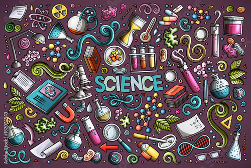 Wall mural vector cartoon set of science theme objects and symbols