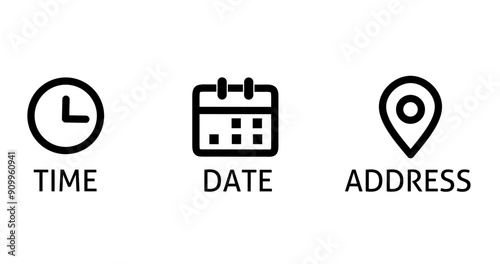Wall mural vector collection of time,date and address icons on white background - Wall murals Wall mural vector collection of time,date and address icons on white background - Wall murals