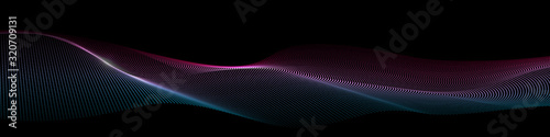 Wall mural : Vector colorful particle wave in blue and violet color on black background