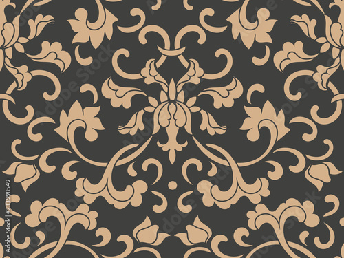 Wall mural vector damask seamless retro pattern background botanic garden spiral curve cross leaf frame vine fl - Wall murals Wall mural vector damask seamless retro pattern background botanic garden spiral curve cross leaf frame vine fl - Wall murals