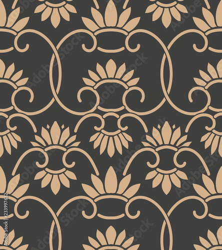 Wall mural : Vector damask seamless retro pattern background spiral curve cross frame oriental flower