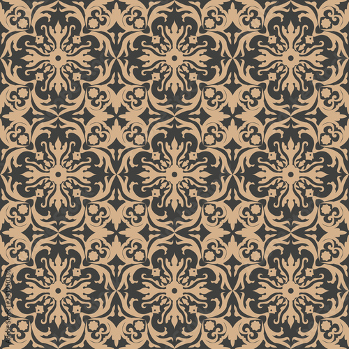 Wall mural vector damask seamless retro pattern background spiral curve cross leaf flower frame kaleidoscope - Wall murals Wall mural vector damask seamless retro pattern background spiral curve cross leaf flower frame kaleidoscope - Wall murals