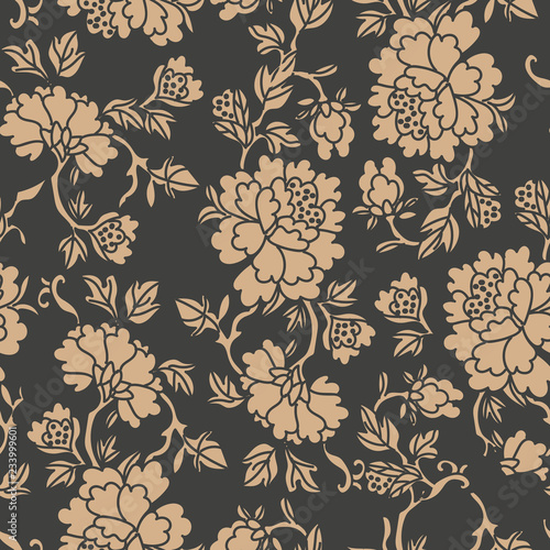 Wall mural : Vector damask seamless retro pattern background spiral curve cross leaf frame vine flower peony
