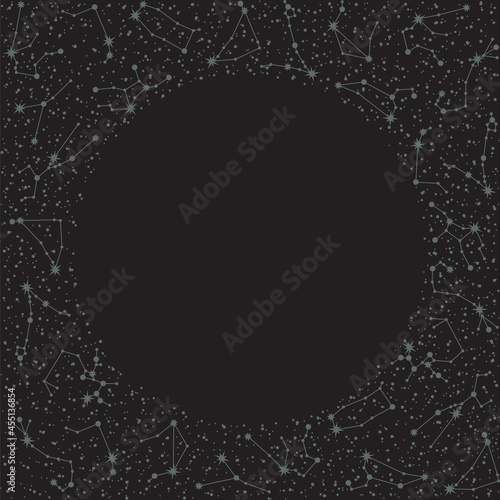 Wall mural vector dark zodiac constellations background with a round copy space. celestial frame with horoscope