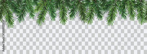 The watermark will not be included on Wall mural.: Vector decorative seamless christmas pattern or frame with green coniferous branches