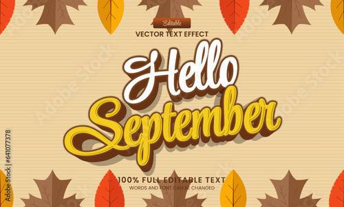 The watermark will not be included on Wall mural.: Vector design editable text effect, hello september typography text