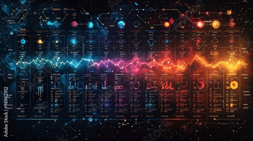 Wall mural vector design of the periodic table with each element represented in a vibrant modern style emphasiz