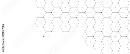 Wall mural vector digital hexagonal background geometric abstraction with lines and dots.