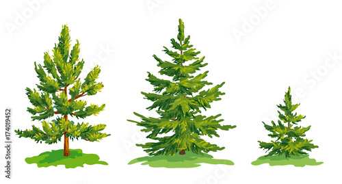 Wall mural vector drawing of little pine tree and two fir trees