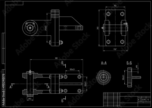 Wall mural vector drawing of steel mechanical part with through holes and dimension lines. engineering cad sche - Wall murals Wall mural vector drawing of steel mechanical part with through holes and dimension lines. engineering cad sche - Wall murals