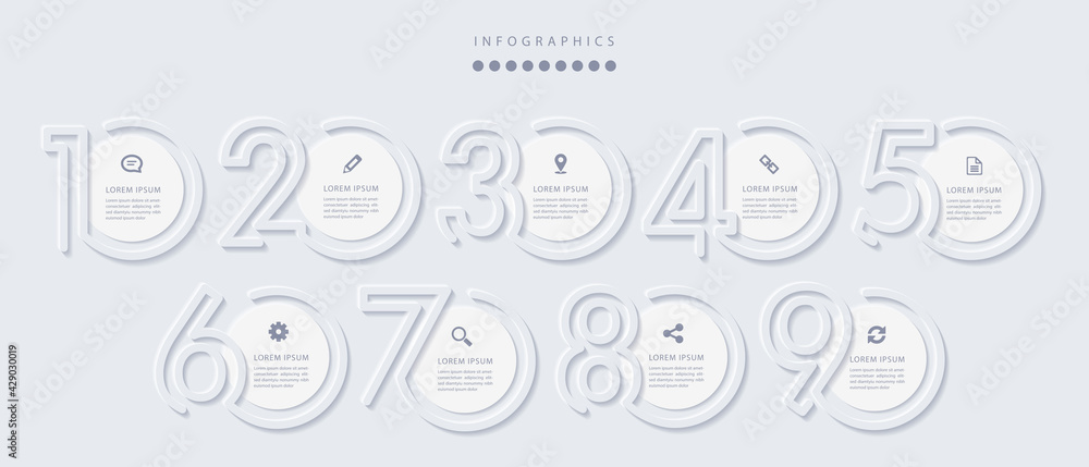 Wall mural : Vector elegant simple refined style infographic design ui template 9 number labels and icons