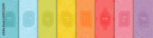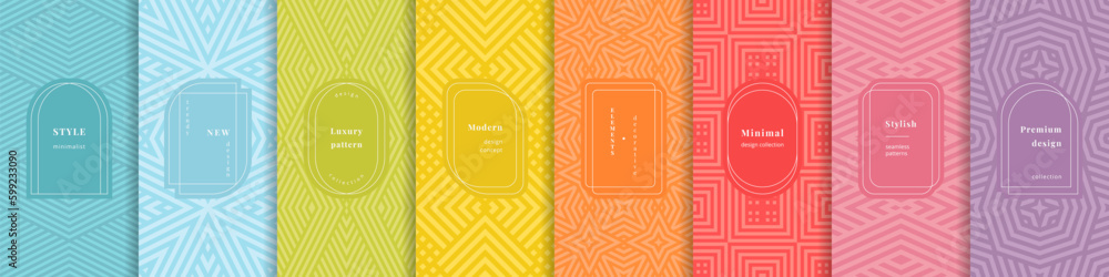 Wall mural vector geometric seamless patterns. rainbow colorful set of abstract stylish backgrounds with elegan