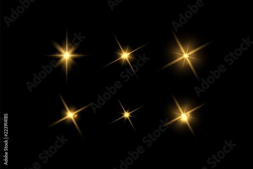 Wall mural : Vector glowing light effects set - stars bursts with sparkles elements for any image - transparent sta
