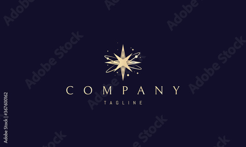 Wall mural vector golden logo on which an abstract image of a big bang in the form of stars and planets.