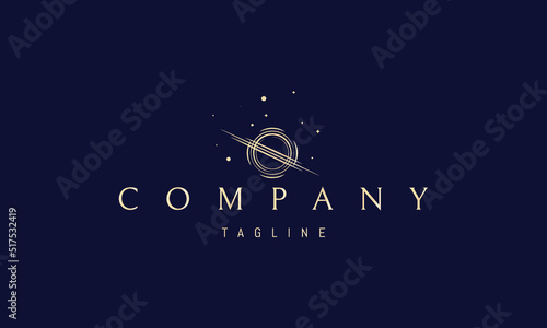 Wall mural vector golden logo on which an abstract image of a black hole in space in a linear style.