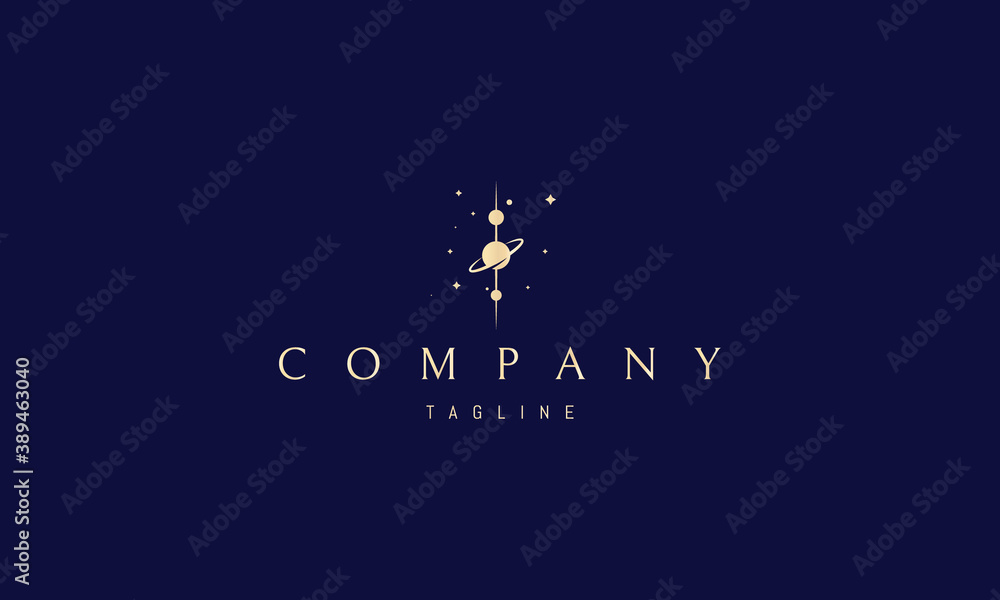 Wall mural : Vector golden logo on which an abstract image of three planets lined up in a row -