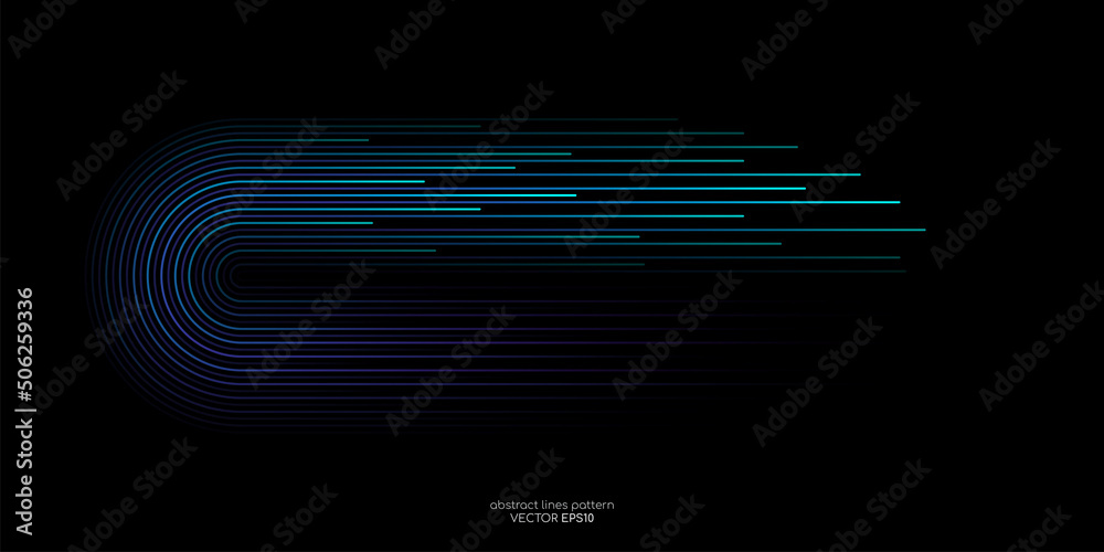 Wall mural vector half circles lines flowing dynamic pattern in blue green colors isolated on black background