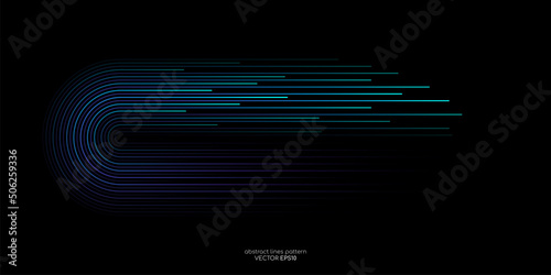 Wall mural : Vector half circles lines flowing dynamic pattern in blue green colors isolated on black background
