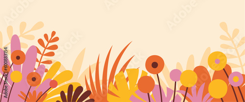 The watermark will not be included on Wall mural.: Vector horizontal abstract background with copy space for text, abstract cover header with plants an